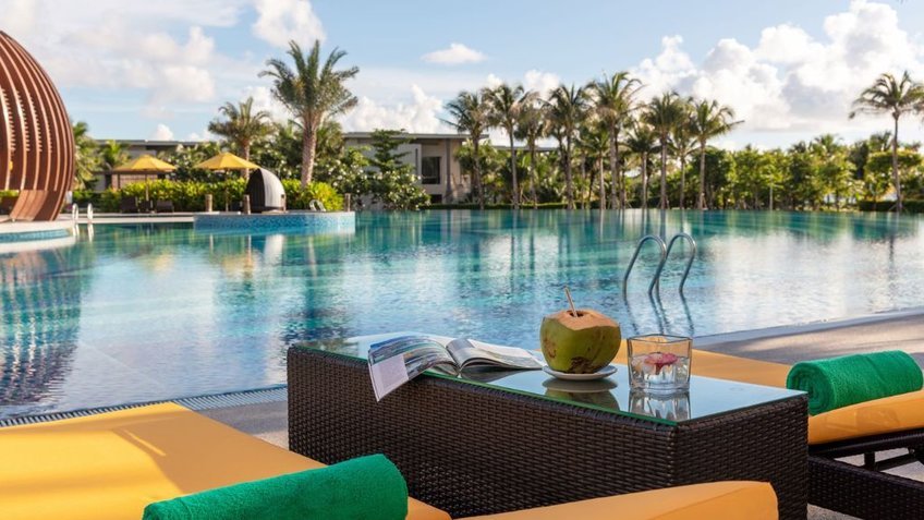 - Hồ bơi cực kì rộng lớn với thiết kế độc đáo nằm ở chính giữa resort