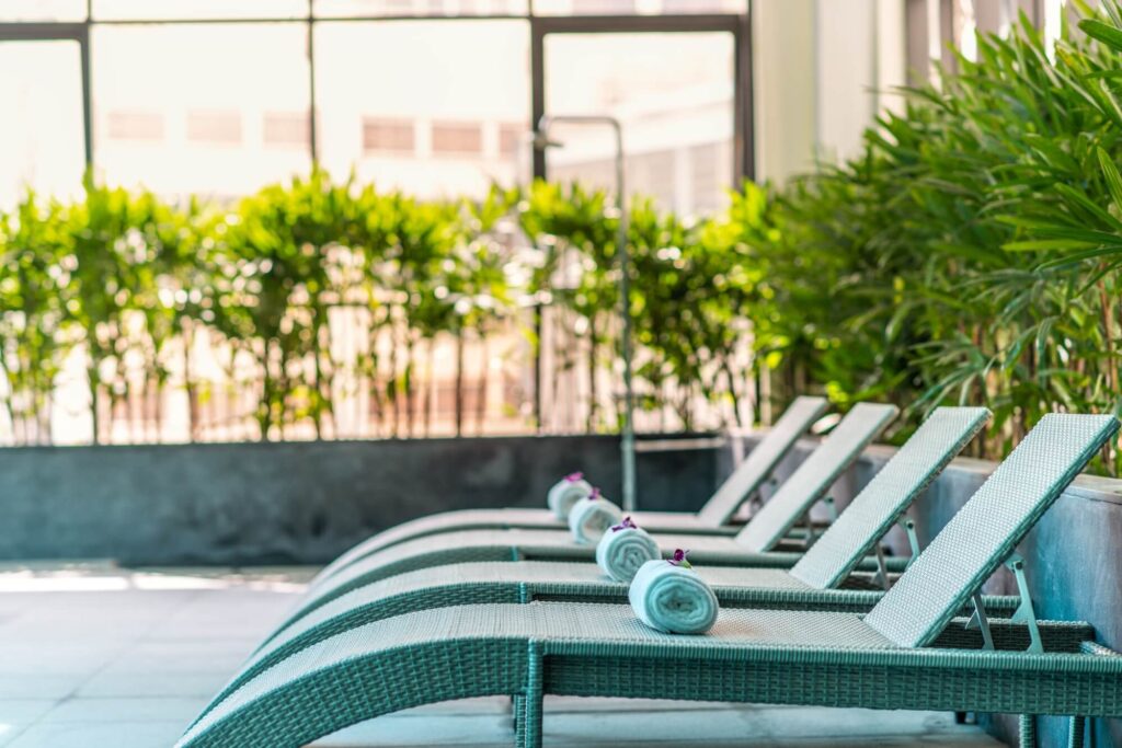 Phòng Junior Suite 46m2 rộng rãi có khu vực phòng khách nhỏ với ghế sofa và TV màn hình xoay 180*. Đặc biệt có ban công lớn và tầm nhìn rộng ra thành phố.