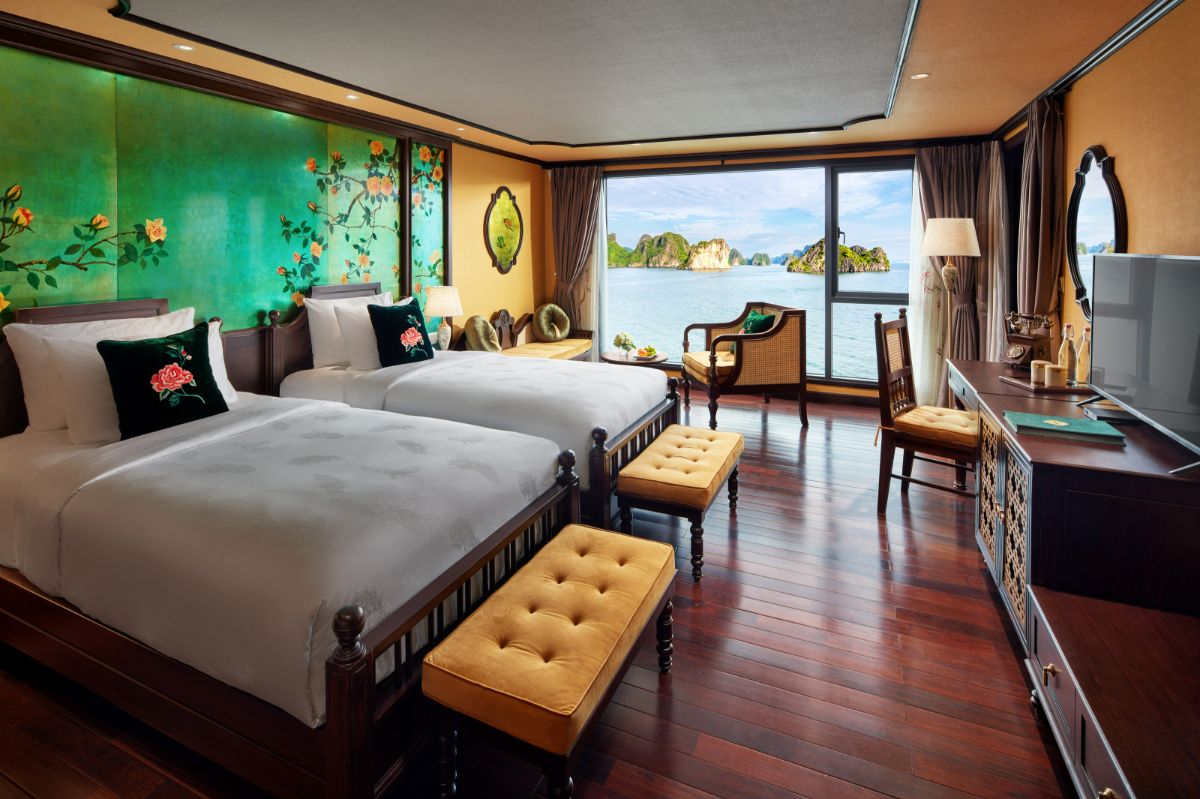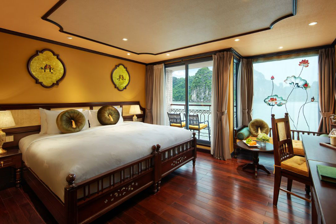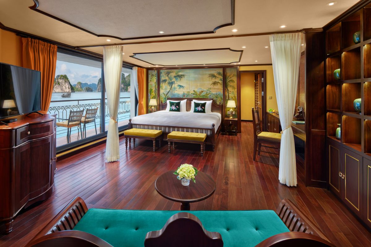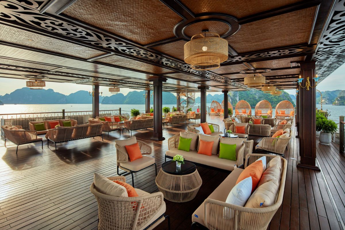 Du thuyền Indochine Premium đạt chuẩn 5 sao, là du thuyền có tổng diện tích và sundeck lớn nhất trên vịnh Hạ Long cho tới thời điểm hiện tại. Với thiết kế mang nét Đông Dương cùng các sản phẩm thủ công được làm bởi các nghệ nhân nổi tiếng, du thuyền sẽ mang lại cho bạn một không gian đậm chất Việt. Sở hữu những tiện ích như sân tập Golf, bể bơi ngoài trời, hầm rượu vang,… Indochine sẽ là một điểm đến lý tưởng để quý khách cùng gia đình, bạn bè, người thân đến trải nghiệm.