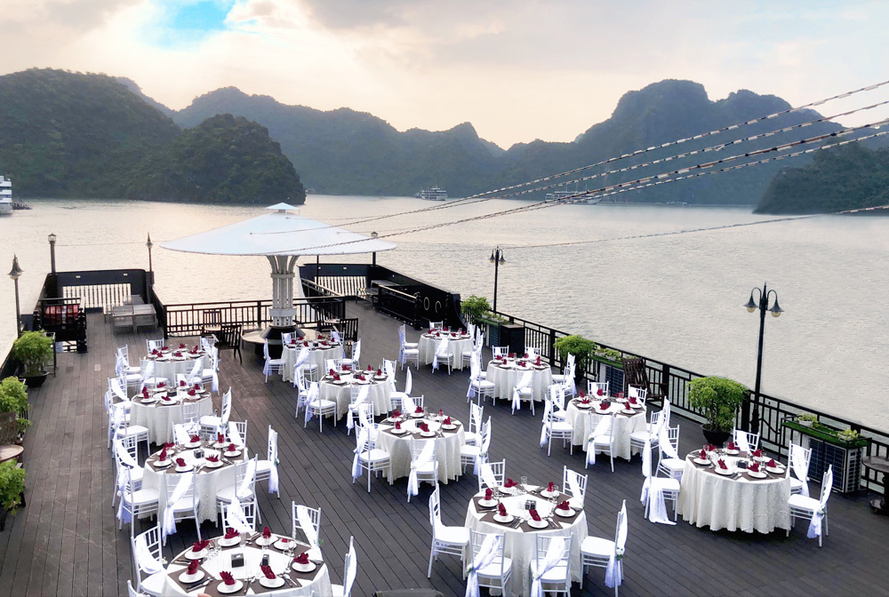 17:30 – 18:30 Thưởng thức Tiệc Trà Chiều với đồ ăn nhẹ, trái cây tươi miễn phí & những đồ uống yêu thích bạn mua tại đây trong khi chờ đợi hoàng hôn trên Vịnh Lan Hạ. Tận hưởng chương trình đồ uống “Mua 2 tặng 1” trong Giờ vàng khuyến mãi tại nhà hàng Mimosa Cafe & Sky bar trên tầng 5