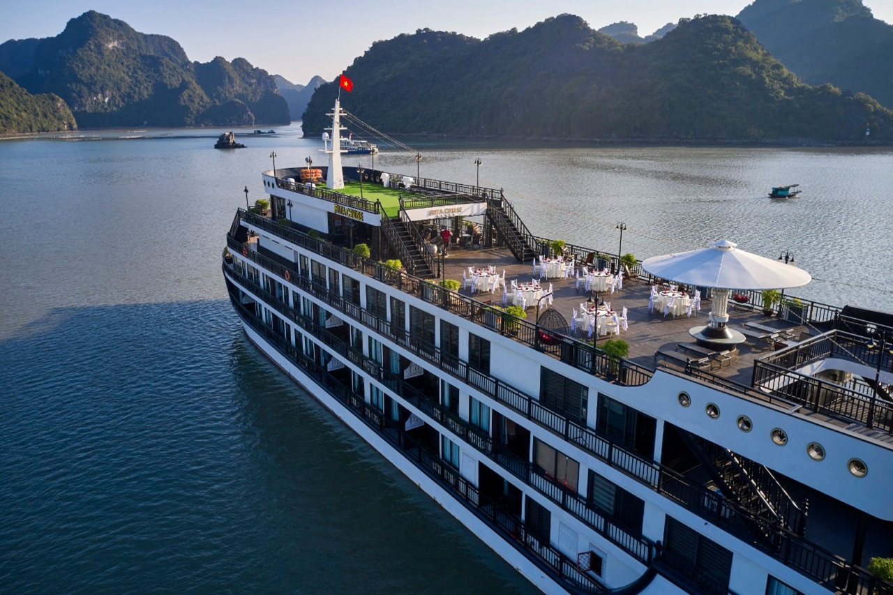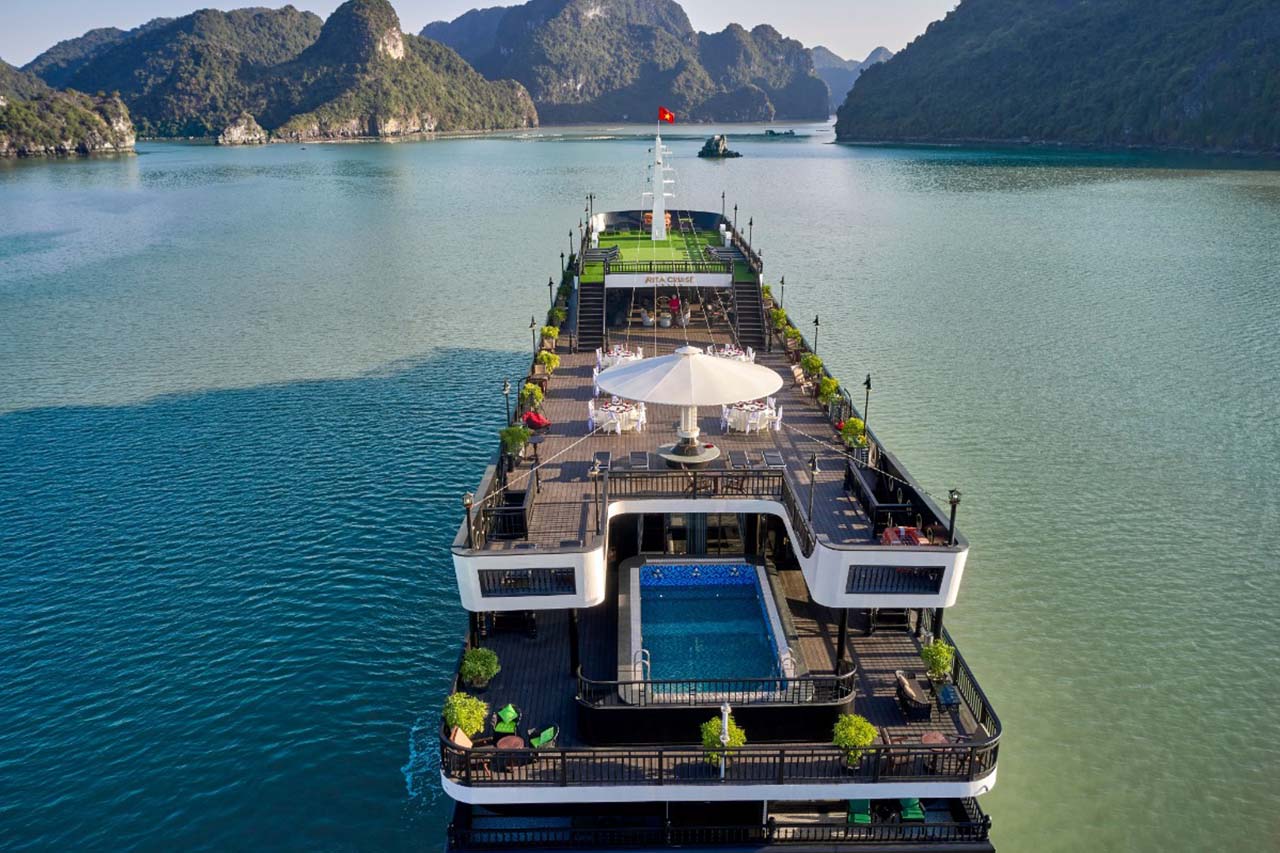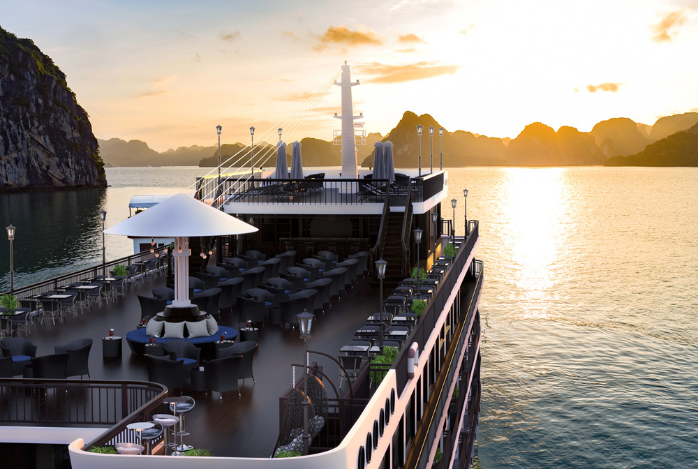 Rita Cruise là siêu du thuyền mới thượng hạng đáp ứng tiêu chuẩn Quốc Tế 5 sao và hiện chúng tôi tự hào đang được đánh giá là siêu du thuyền đẹp và sang trọng nhất nhì vịnh Hạ Long và vịnh Lan Hạ. Đây là siêu du thuyền đầu tiên có trang bị hồ bơi lớn và phòng karaoke cách âm riêng biệt đạt chuẩn 5 sao Quốc Tế. Tất cả các phòng ngủ đều có ban công riêng nhìn ra đại dương. Các hành trình là độc đáo và khác biệt với tất cả các du thuyền trên vịnh Lan Hạ. Hãy đến với Rita để thưởng ngoạn những phút giây lãng mạn và trải nghiệm dịch vụ 5 sao đẳng cấp.